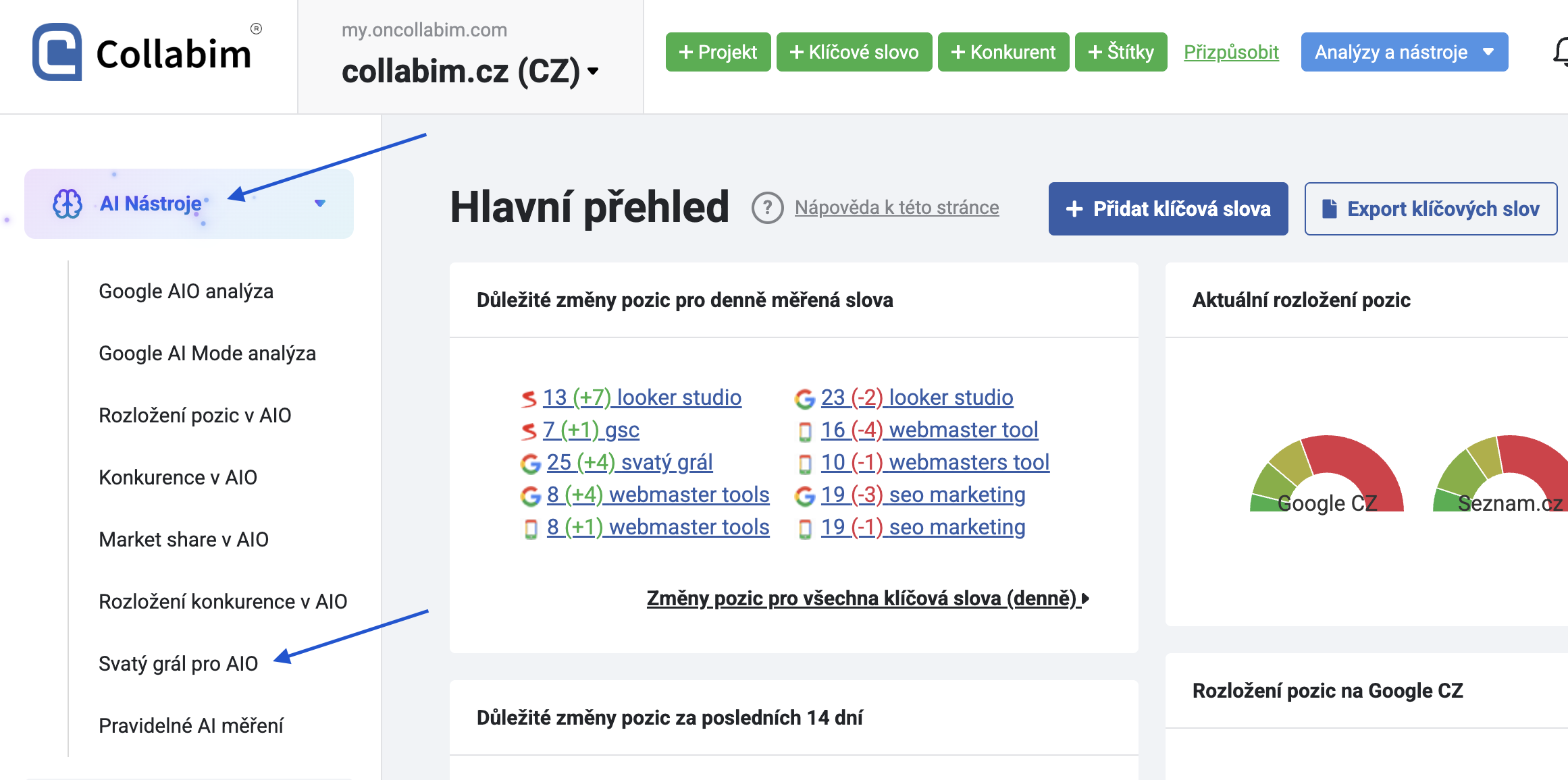 Svatý Grál pro AIO je nová funkce Collabimu, která navazuje na klasický Svatý Grál, ale zaměřuje se přímo na výsledky AI Overviews (AIO) ve vyhledávání Google.